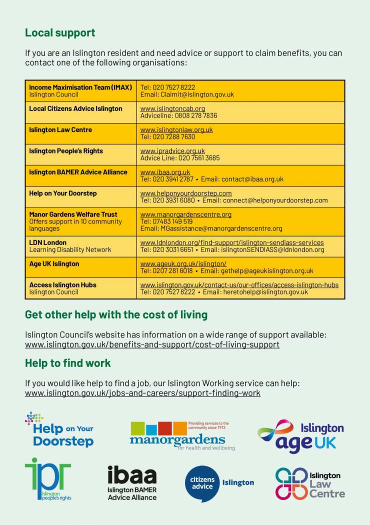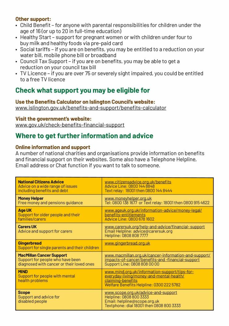 Islington Council’s website has information on a wide range of support available: